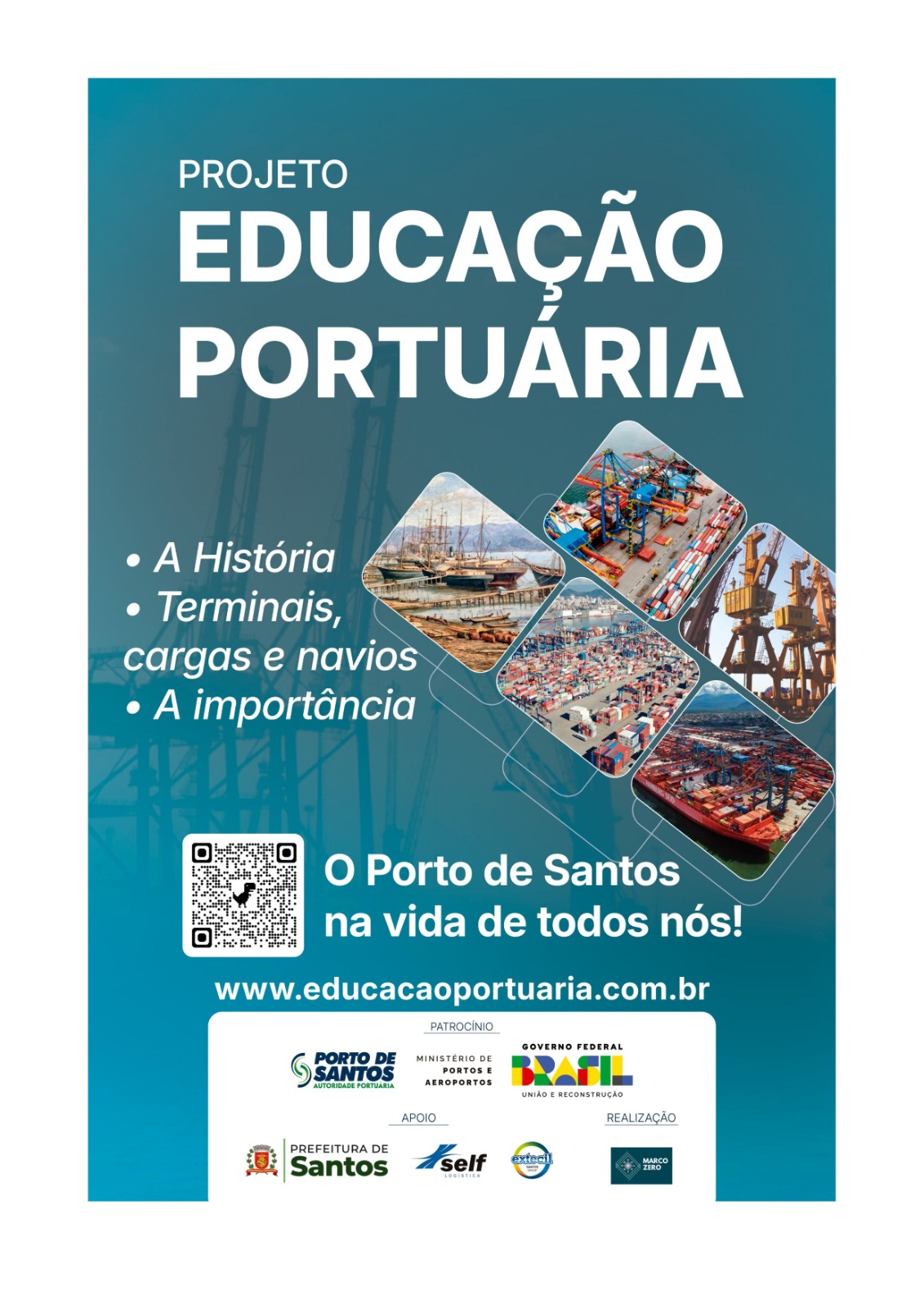 Muito mais que um gigante da economia, o Porto de Santos faz parte da história e do dia a dia da cidade. O projeto Educação Portuária aproxima alunos, professores e a comunidade desse universo, com atividades educativas, contação de histórias e concurso cultural. Uma iniciativa que revela a importância social, econômica e ambiental do maior porto da América Latina.